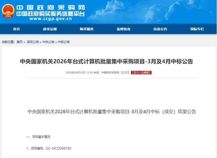 4月10日,中央國家機關(guān)公布了3月和4月的臺式機批量集采結(jié)果。本次采購總預(yù)算達(dá)到810萬元,五個配置包全部中標(biāo),無一流標(biāo)。今天我們就來拆解這份剛剛出爐的央采臺式機公告所隱藏的一些背后邏輯和趨勢!