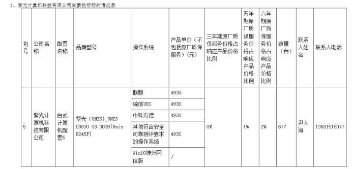 首先我們來看下中標(biāo)金額,此次紫光計算以333.76萬元位居第一,單價4930元,中標(biāo)數(shù)量達(dá)677臺,占據(jù)本次采購總量1620臺的41.8%,成為本輪央采的最大贏家。