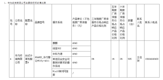 另外,華為終端以288.99萬元位列第二,產(chǎn)品單價4940元,中標(biāo)數(shù)量585臺。與紫光僅差不到6個百分點。華為擎云W515系列繼續(xù)走ARM路線。